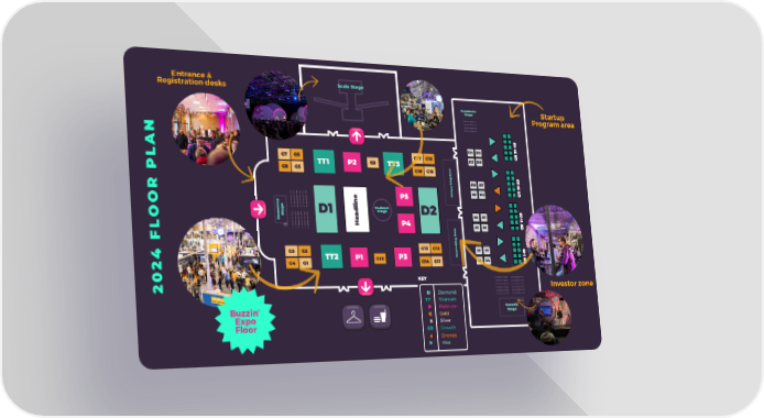 Entrance & Registration desks Startup Program area N A L P R O O L F 4 2 0 Investor zone 2 Buzzin’ Expo Floor