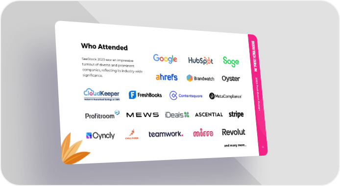 SaaStock Dublin 2023 Post Event Report Page 15 Page 17Who Attended SaaStock 2023 saw an impressive turnout of diverse and prominent companies, reflecting its industry-wide 2 0 2 significance. 3 P o s t - E v e n t R e p o r t and many more... 16