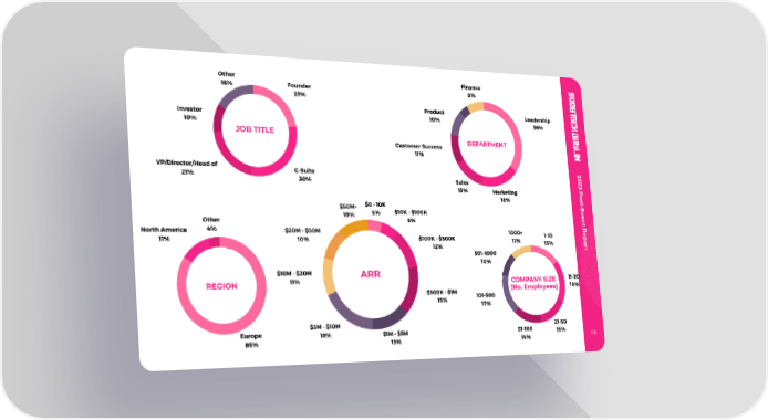 Finance Other 8% Founder 16% 23% Product Leadership 10% Investor 36% 10% JOB TITLE DEPARTMENT Customer Success 11% 2 VP/Director/Head of 0 C-Suite 2 21% 3 Sales 30% P 13% o Marketing s t 18% - E $0 - 10K $50M+ v e $10K - $100K 5% 10% n t 6% Other R e 4% North America $20M - $50M 1000+ p 1-10 $100K - $500K o 10% 11% 11% r 15% t 12% 501-1000 10% $10M - $20M ARR 11-20 11% COMPANY SIZE REGION 18% (No. Employees) $500K - $1M 101-500 15% 17% $5M - $10M 21-50 Europe 18% 51-100 $1M - $5M 15% 08 85% 13% 14%